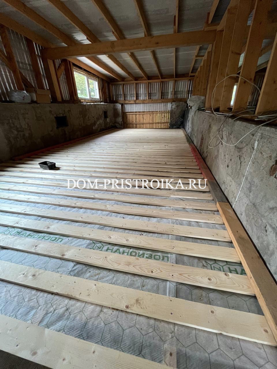 - Монтаж чернового пола с антисептированием