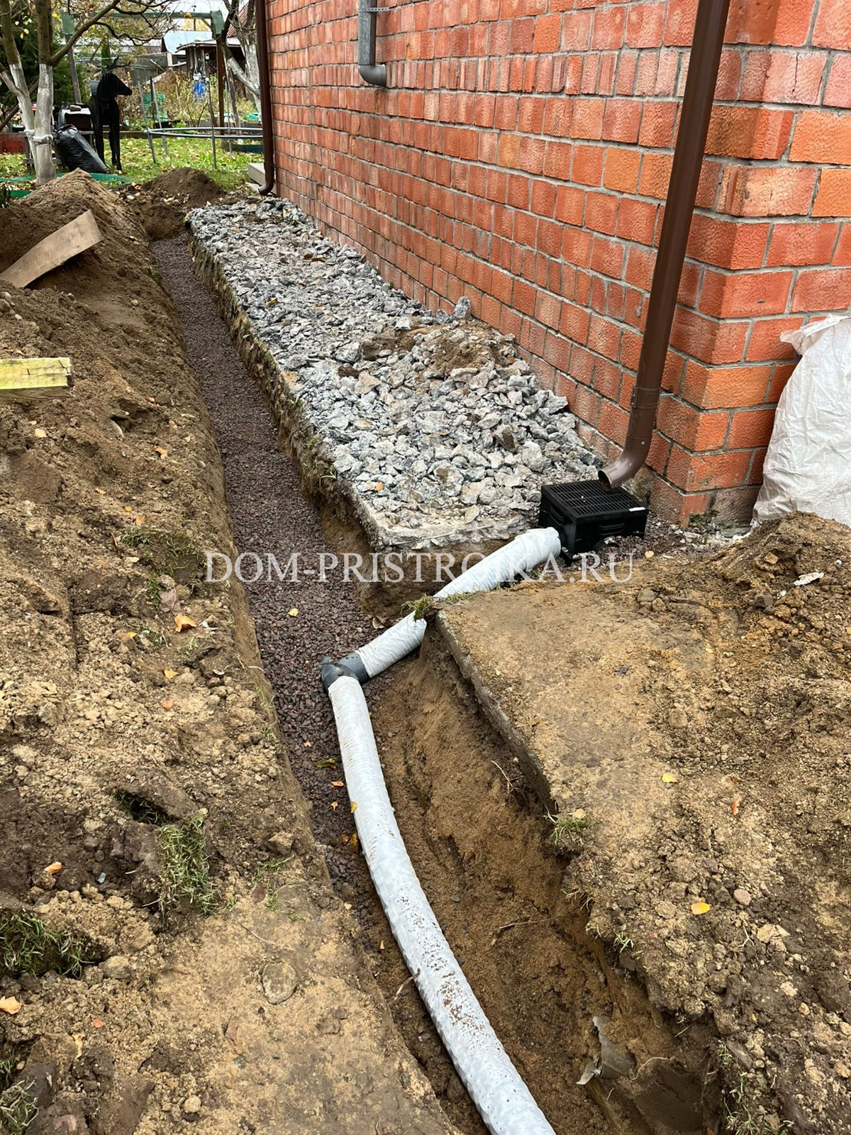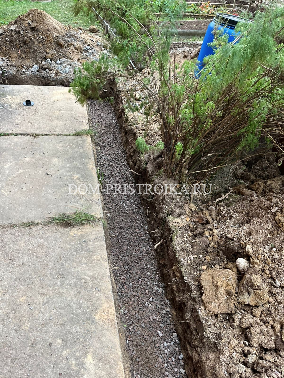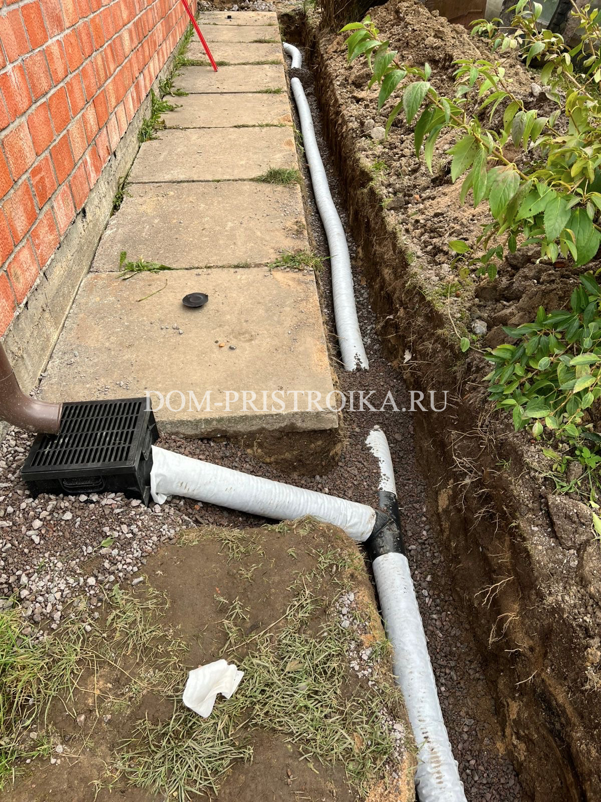 - Монтаж дренажных труб по участку