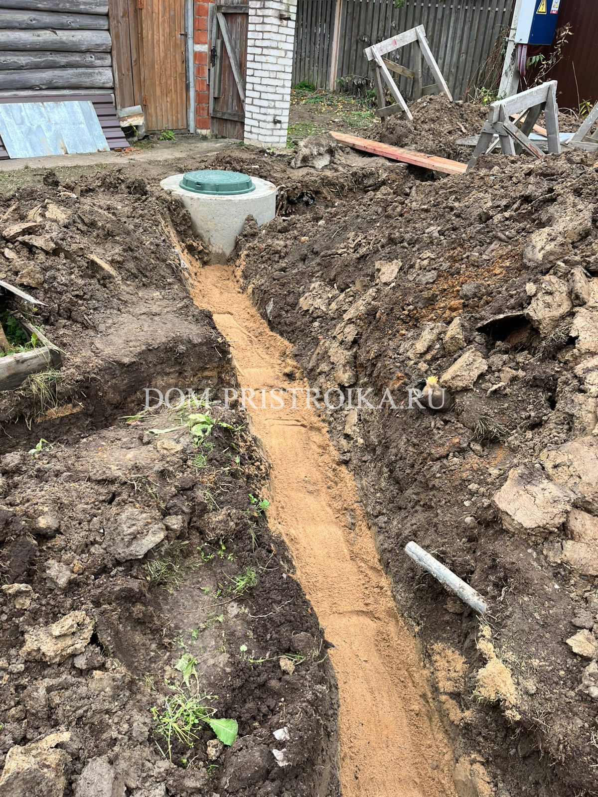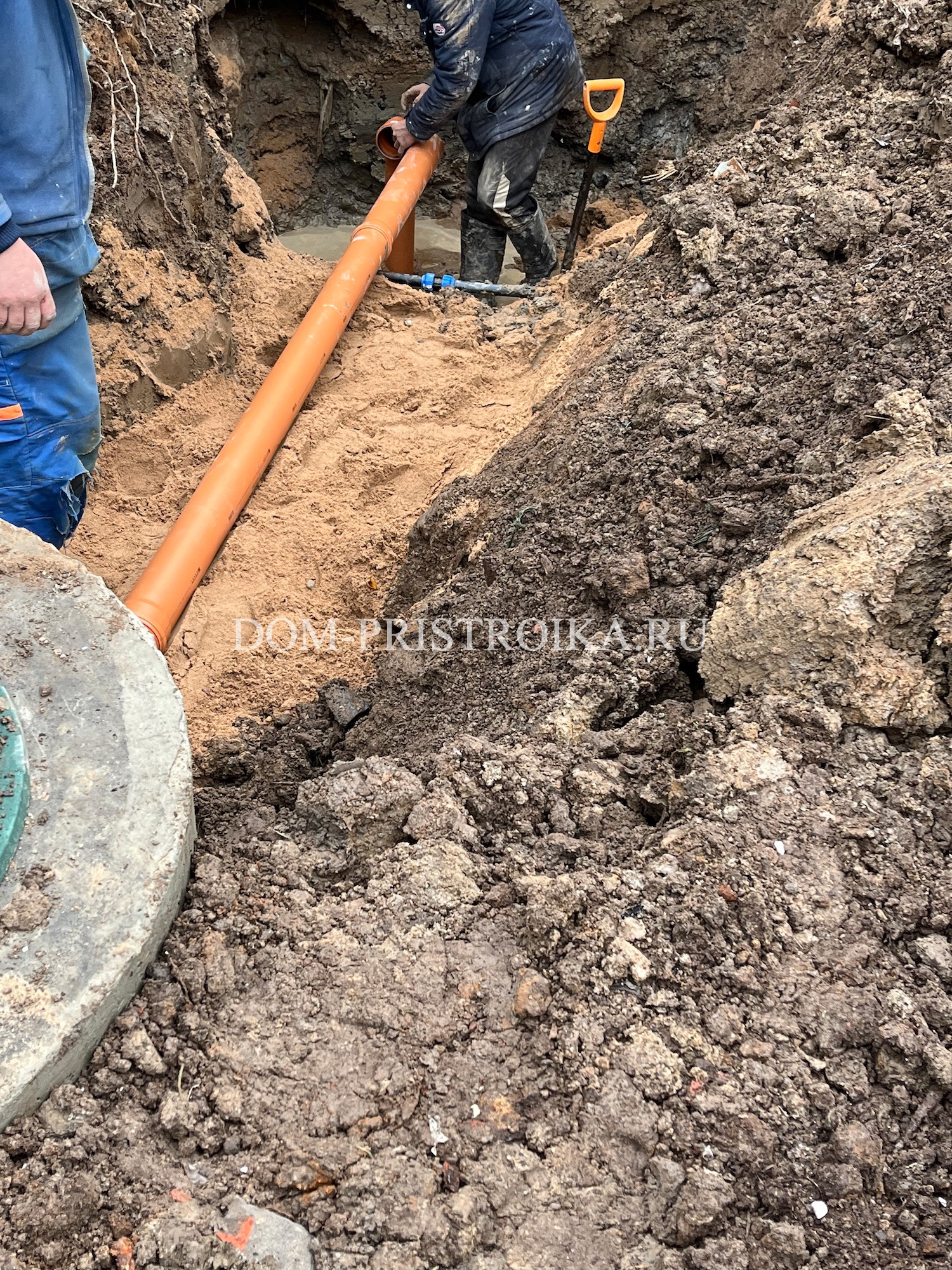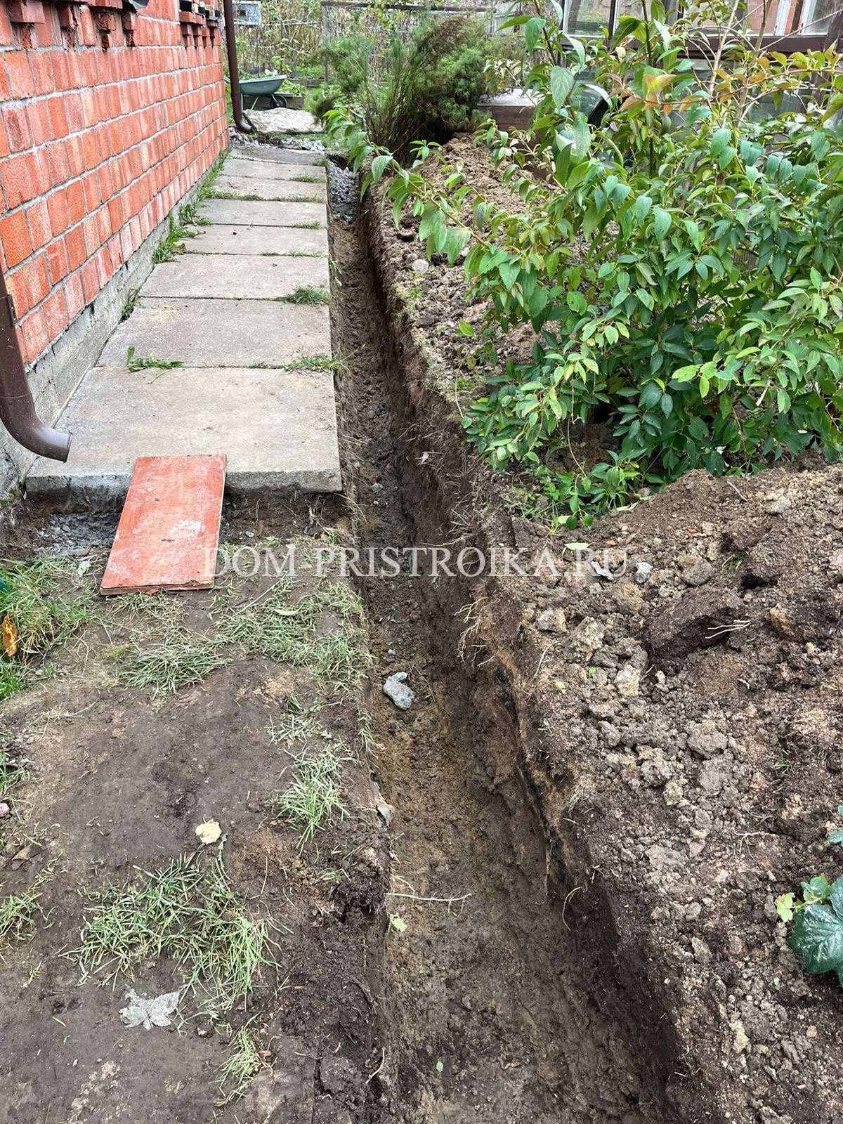 - Монтаж дренажных труб по участку