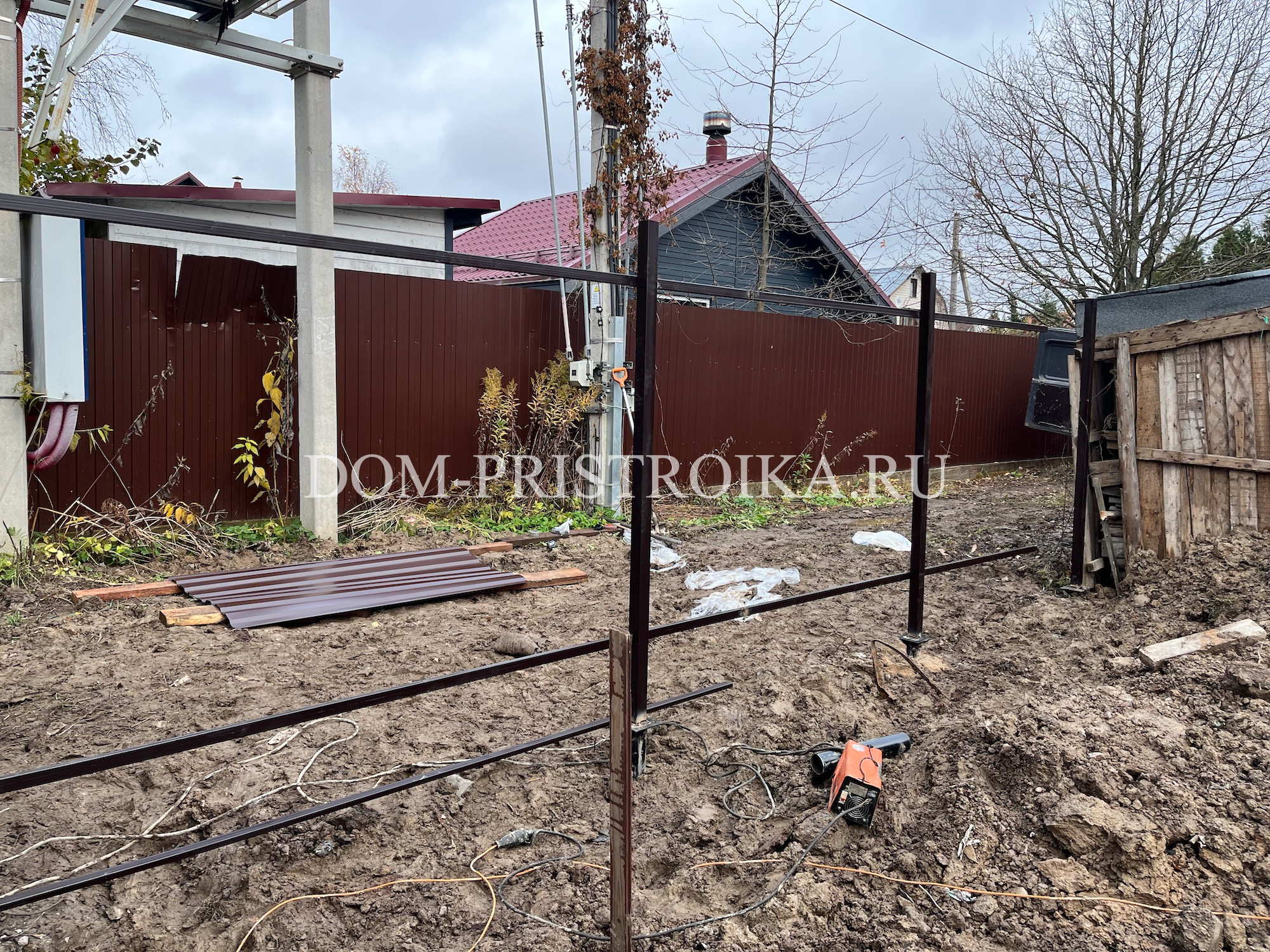 Дренажные работы. Монтаж забора из профлиста.