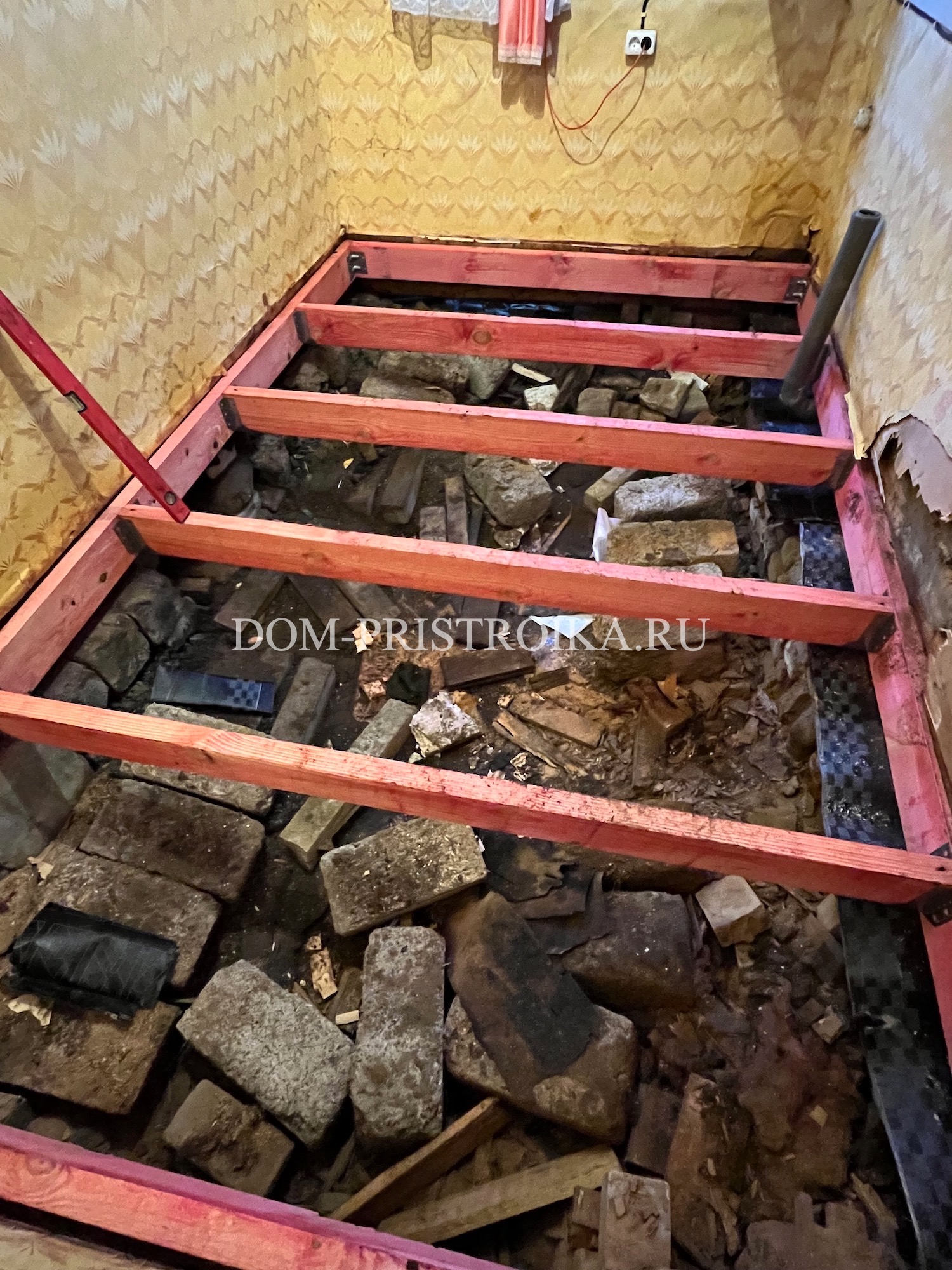 - Монтаж лаг пола из доски камерной сушки 50х150 мм
