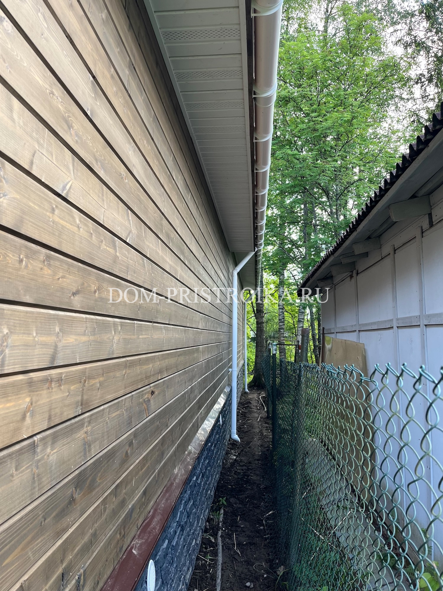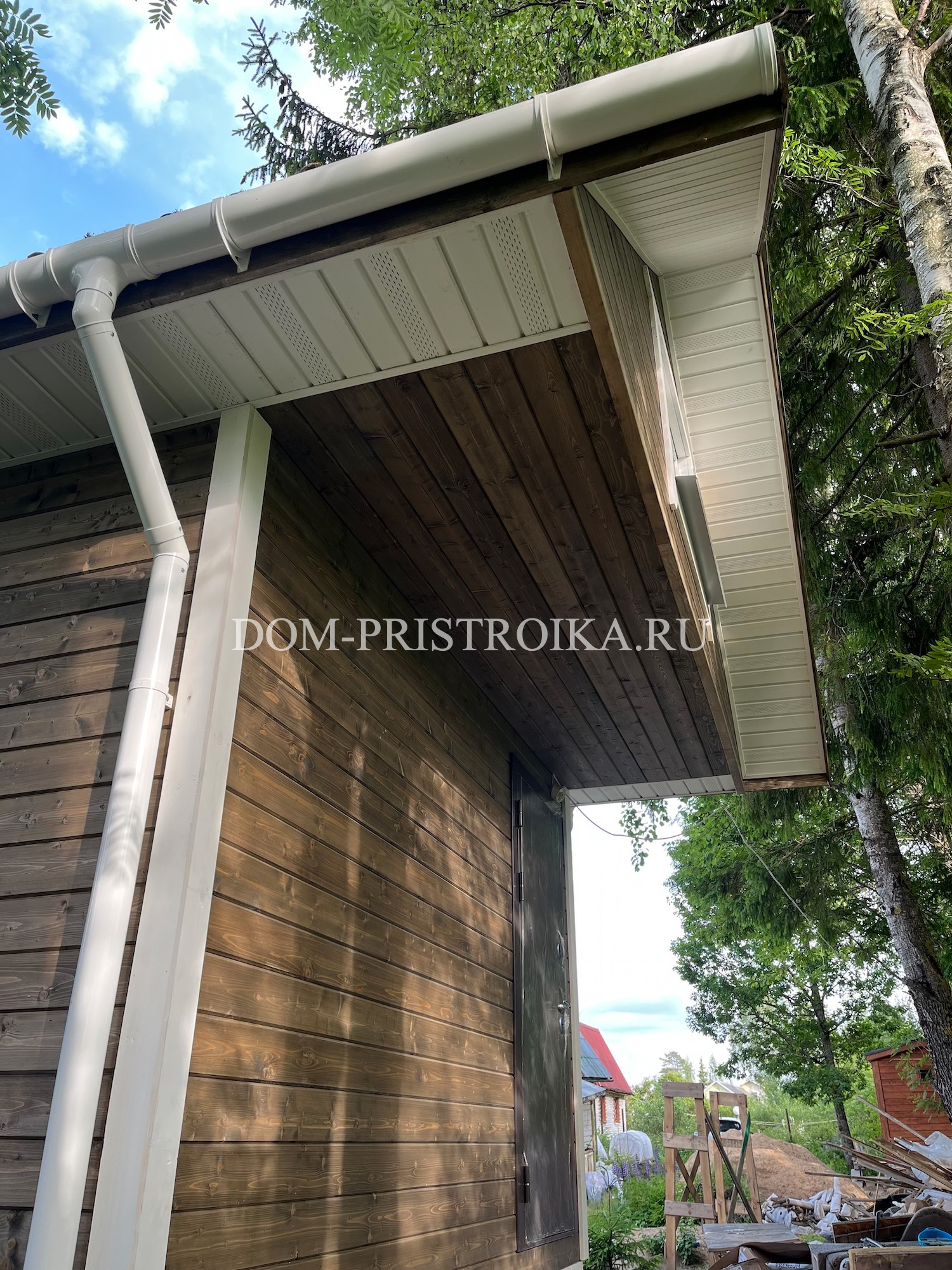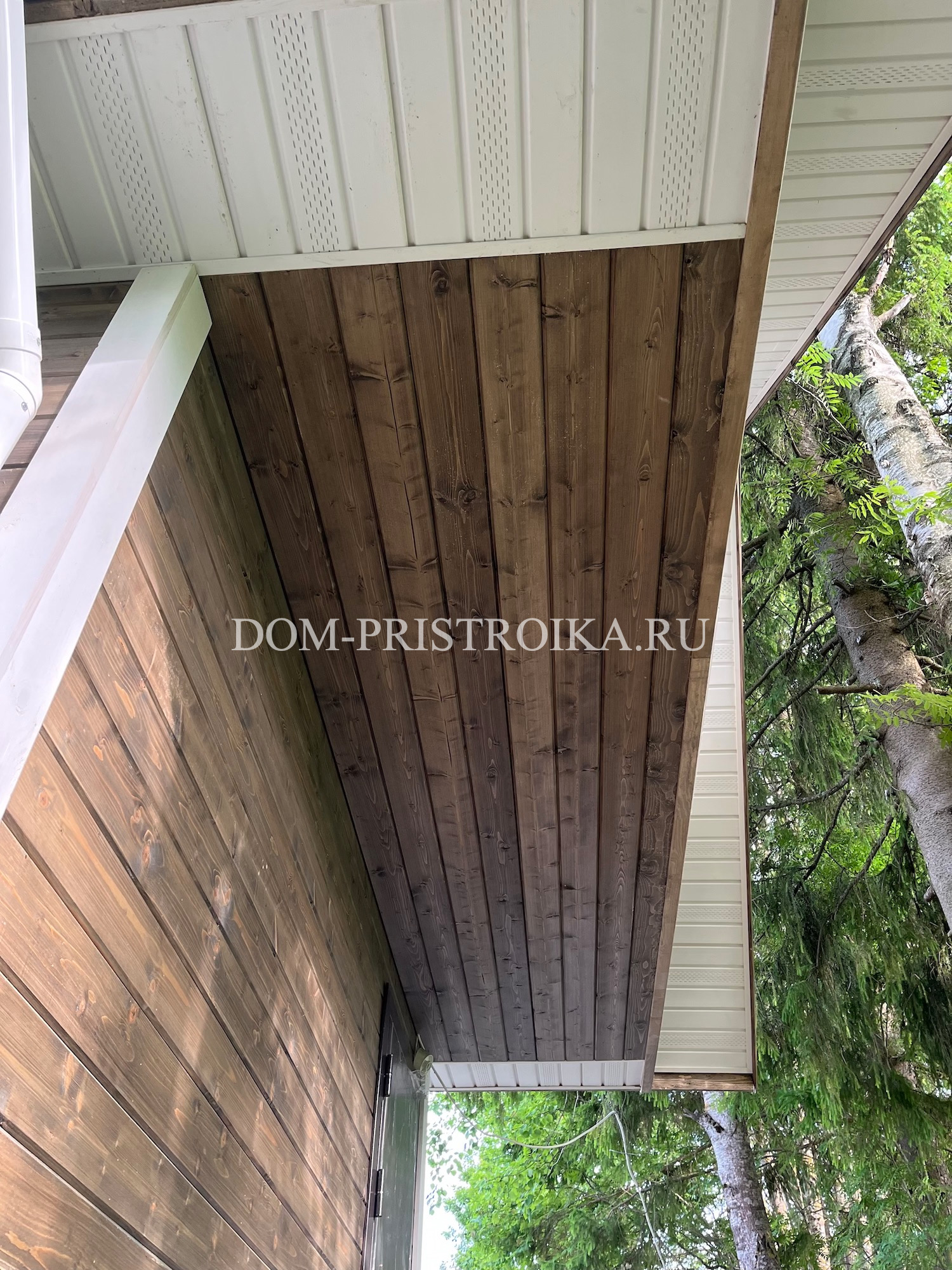 - Подшивка свесов и выносов кровли cухой строганной доской с заводской покраской "Renowood Wax"